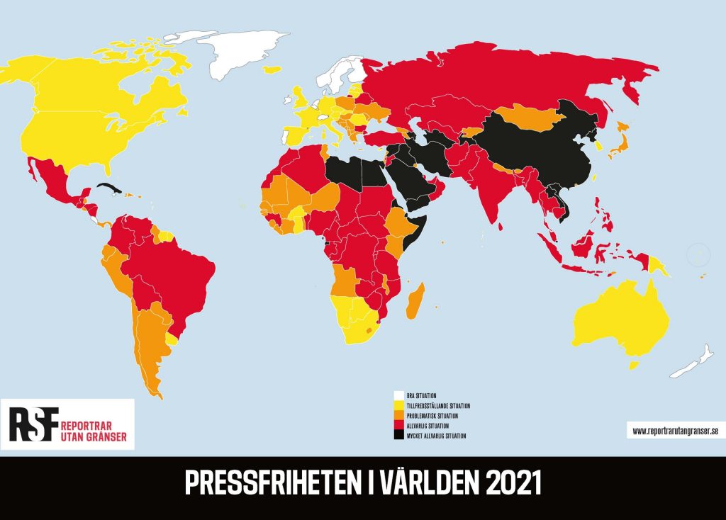 hur stor eller liten pressfrihet olika länder har.