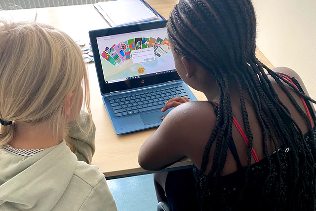 Elever testar Barnrättsspelet. Foto: My Human Rights.
