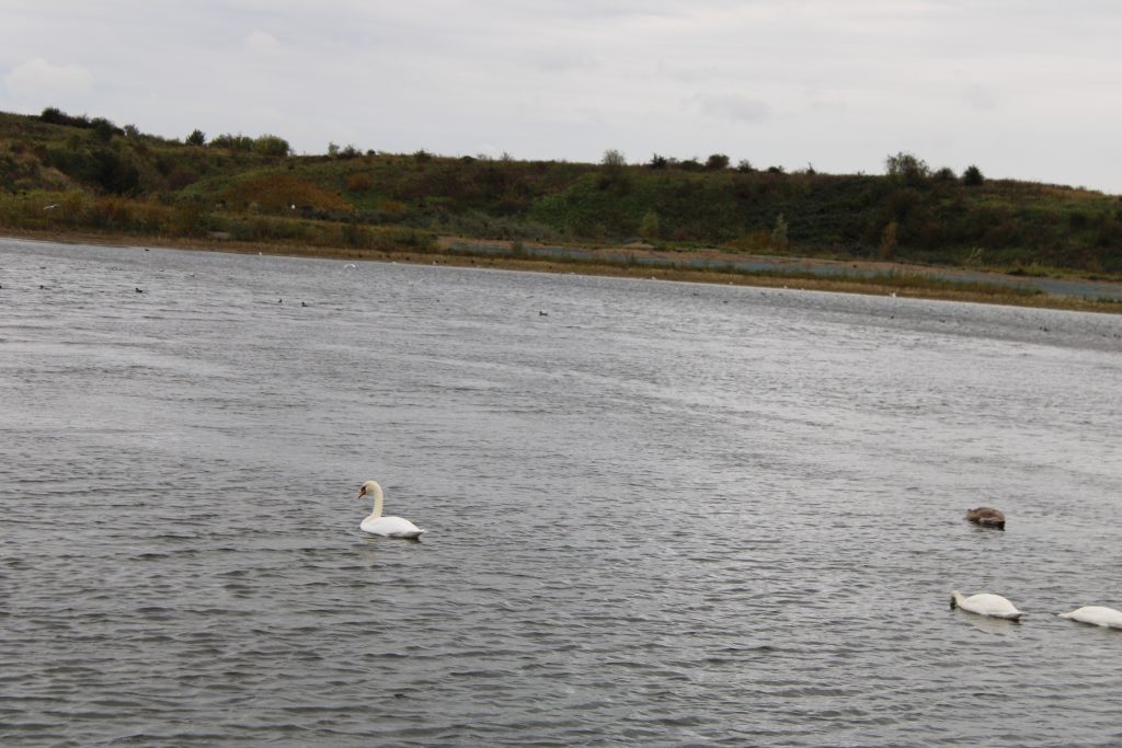 I dammen simmade det svanar.