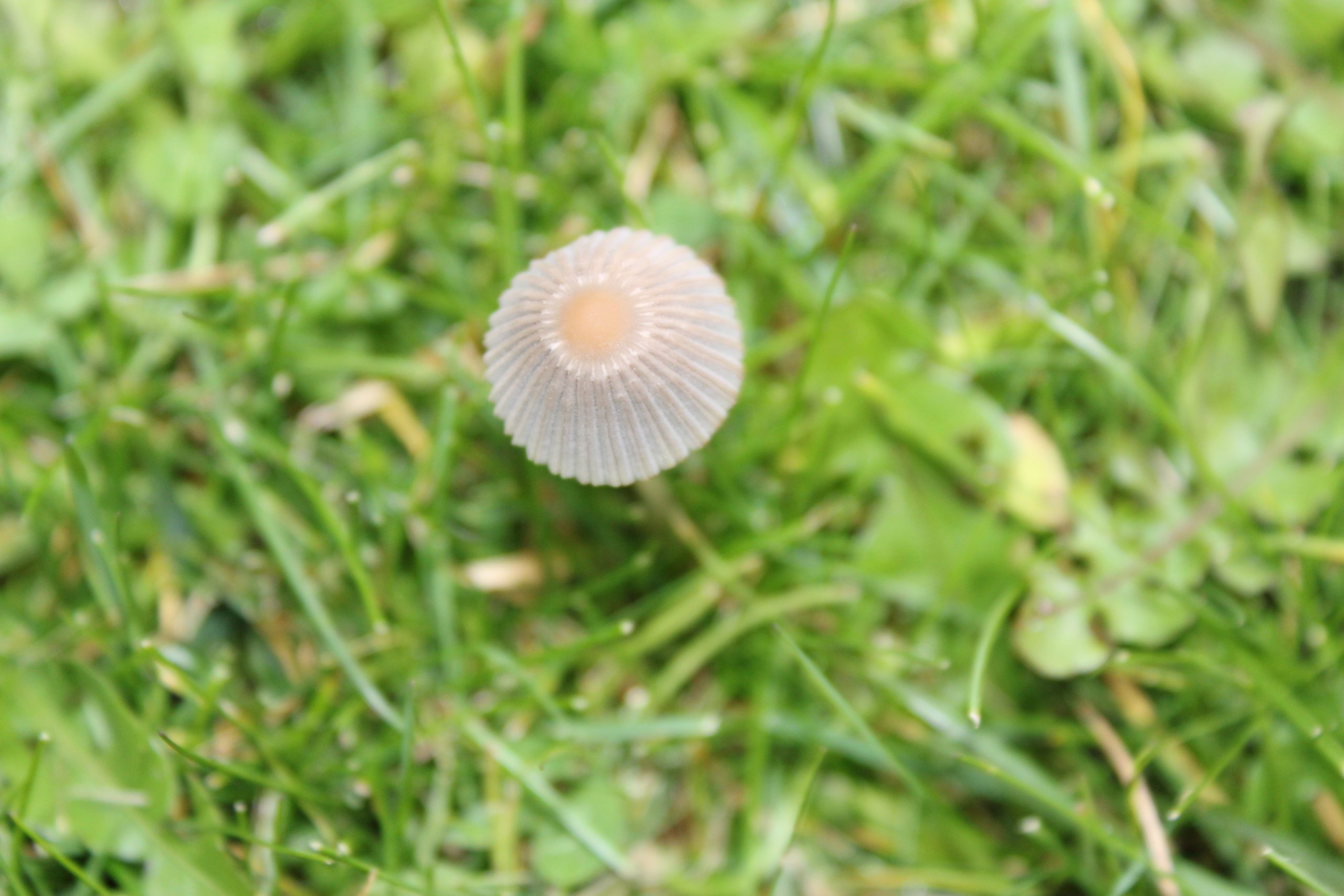 I en gräsmatta hittade vi en liten svamp.