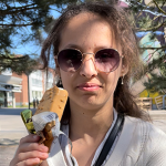 Den luktar mycket choklad och är lockande att titta på. Den smakar popcorn och karamell. Den har mycket smak och jag gillar den för att den har karamell. Jag kommer att äta den igen. Den passar bra när man typ är ute med vänner.