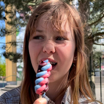 När jag öppnar paketet ser jag en vit glass med rosa prickar och den luktar gott med vanilj. Man blir sugen när man kollar på den. Glassen poppar i munnen när man äter den. Jag tycker att den smakar surt av citronen men man blir ändå sugen på att äta den. Hallonsmaken är min favorit.